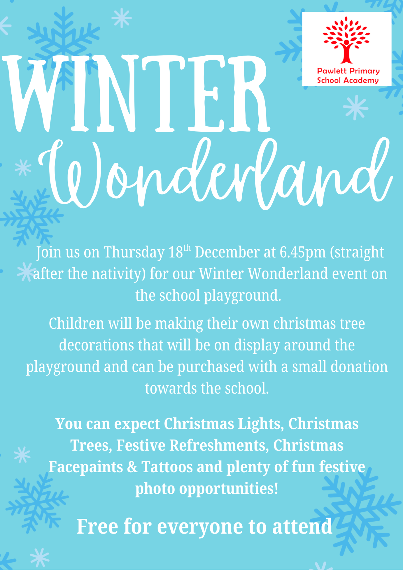 The PTFA's next events are supporting the school at the Winter Wonderland on Thursday 18th December at 6.45pm and the New Year School Disco.